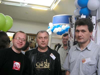 Олександра Левченка, Тимура Литовченка і Радія Радутного біля стенду